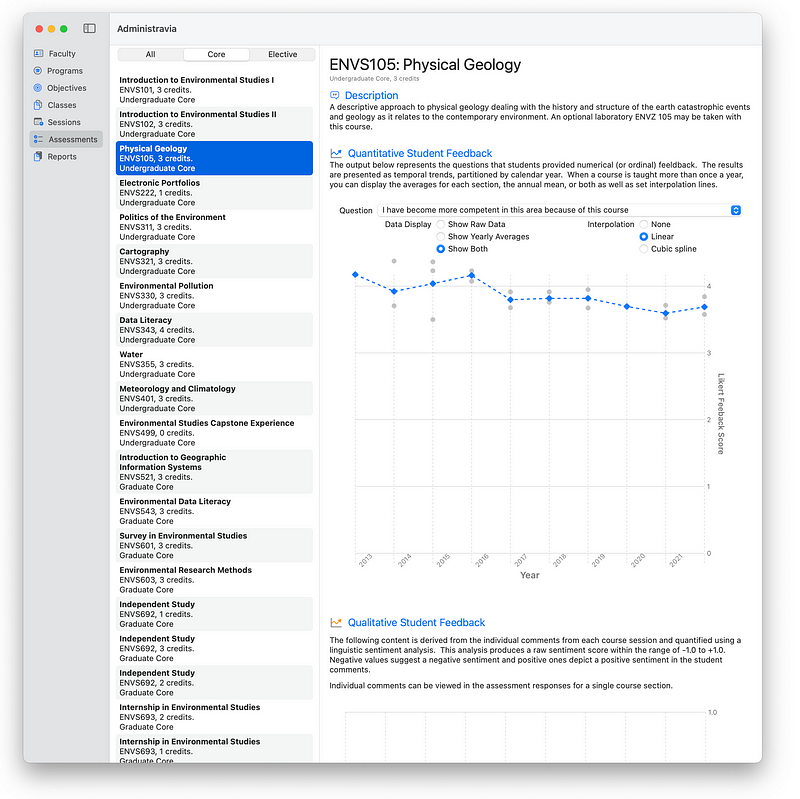 - Temporal analysis of course assessments is based upon both quantitative feedback from students but also from linguistic sentiment analysis of written responses and student feedback.