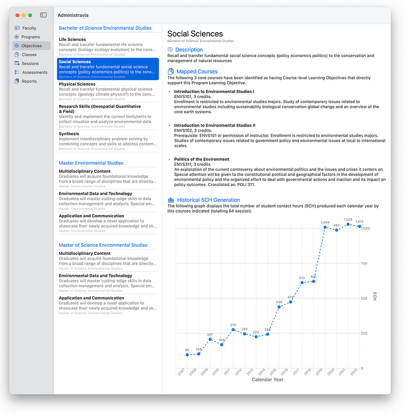 The Administravia application also imports the files from this one so that it can hook up the mappings that we show in the section above from Assessment Tool → Course Learning Objective → Program Learning Outcome.