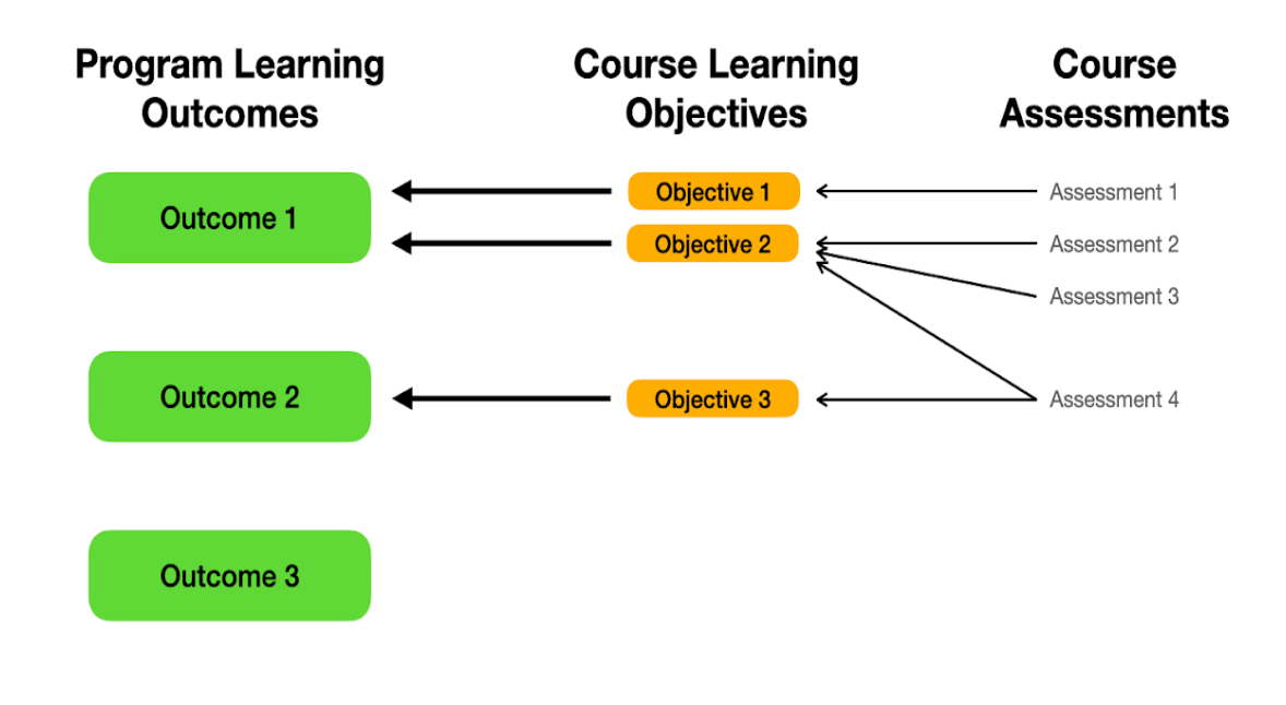 - Course assessments that do not map onto course learning objectives suggest that students are being evaluated for some content that is not the specified domain of this course. This may be evidence of busy work or incomplete coverage of what the course is intended to provide.