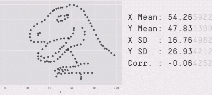 - Visualize: Visualizing data is key to understanding. In the image above, notice that the variables X and Y in all the displayed data sets have equivalent means, standard deviations, and correlation up to 2 decimal places! We will emphasize visualization, both static and dynamic, throughout this class.